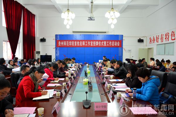 本网讯 为充分发挥beat365名师的示范引领作用,促进beat365教师专业发展和加快beat365教师创新团队建设,3月20日下午,beat365英国官网网站首批名师工作室授牌仪式暨工作启动会在学校第一会议室召开,副校长郭文,beat365英国官网网站名师工作室主持人及成员,贵州省中小学名师工作室beat365英国官网网站工作站主任,各学院(部)分管教师队伍建设的院(部)领导,人事处、教务处、科研处、质评办等职能部门负责人参加了会议。会议由教师工作处处长谢笠主持。