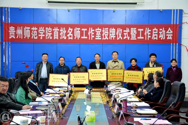 郭文为首批beat365英国官网网站吴俊、左羽、王平瑞、黄伟明、刘临洪、聂森名师工作室授牌。并作了重要讲话。她首先代表学校对首批名师工作室主持人表示热烈祝贺,工作室在职能部门的领导下,充分发挥自身优势,按计划开展相关工作。并提出以下三点要求:第一,充分发挥beat365英国官网网站名师工作室引领、示范、辐射作用。指出beat36535岁以下青年教师比重大,青年教师同时也是beat365未来发展的中坚力量,努力构建一支师德高尚、结构合理、业务精湛、充满活力的教师队伍,加强教师队伍建设,适应学校“一型两性”办学定位和应用型人才培养,首批贵州省中小学名师工作室beat365英国官网网站工作站和beat365英国官网网站首批名师工作室要在beat365青年教师培养培训,引领、示范、辐射发挥积极作用;第二,加强beat365英国官网网站名师工作室与校外教师的交流、协作。名师工作室起点高,眼界高,应加大与校外名师工作室的交流、协作,包括思想、观念、理念和体制、机制方面的的沟通、交流;加强高等教育与基础教育的协作能力,按照走出去,请进来的模式,积极探讨协作目标、路径,成果的达成等方面的内容;第三,做好学校顶层设计,完善beat365名师工作室体制、机制建设。充分发挥beat365名师工作室影响力,创新工作室体制、机制,加大工作室考核力度,善于总结、反思、研究,以适应beat365人才培养、办学定位,“十三五”规划的落实。