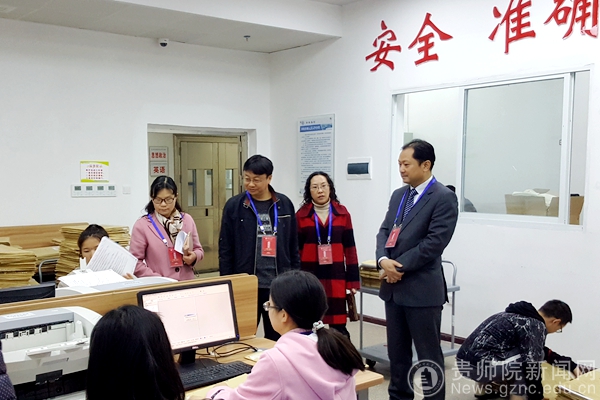 本网讯 3月13日,校党委书记石培新、副校长郭文,到beat365国家教育考试评卷基地视察指导工作,并看望了正在进行“贵州省中小学教师资格证考试”评卷扫描工作的教师和工作人员。评卷基地办公室主任赵德肃、副主任王先华、扫描组组长刘红等陪同视察。