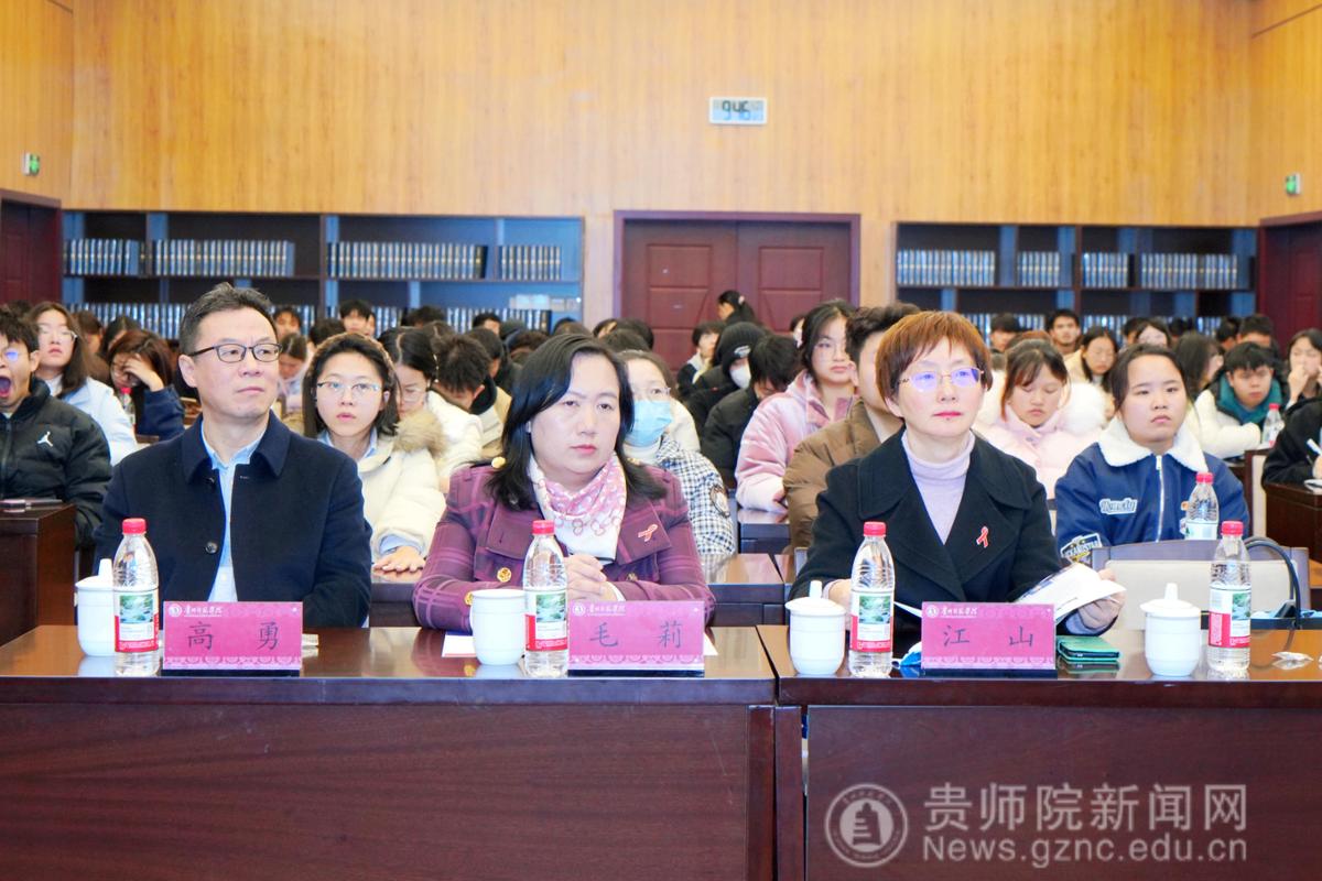 本网讯 12月1日是第38个世界艾滋病日。为进一步加强校园艾滋病防治宣传教育,12月2日,以“知‘艾’防艾,健康同行”为主题的艾滋病防治知识专题讲座在印山书院山骨讲堂举行。此次讲座由贵州省总工会女职工委员会主办,贵州省教育工会承办,beat365英国官网网站协办。贵州省总工会党组成员、副主席、女职工委员会主任毛莉,省委教育工委委员、省教育工会主席江山等领导亲临现场指导工作。