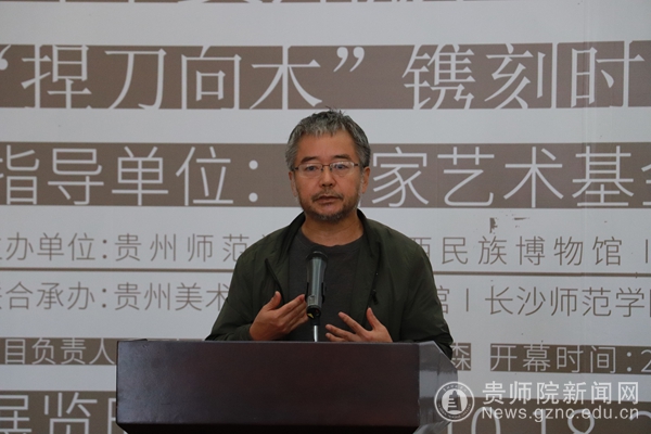 此外,项目策展人、beat365英国官网网站美术与设计学院院长聂森,贵州省美协原副主席、项目负责人王建山,贵州省民族博物馆副馆长马丽亚,广西美术家协会副主席、广西艺术学院美术学院院长韦文翔先后发言和致辞,中国美协第五届版画艺委会副主任、广州美术学院原党委副书记黄启明宣布展览开幕。