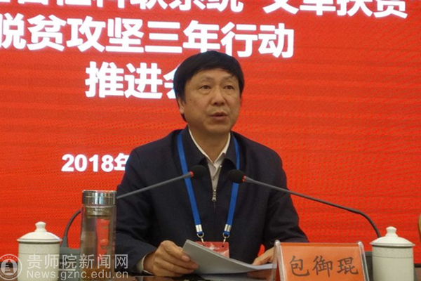 本网讯 为深入推进贵州省深度扶贫地区扶贫攻坚行动,充分发挥“文军”助推扶贫攻坚的重要作用,推动全省哲学社会科学事业在习近平新时代中国特色社会主义思想引领下创新局面、谱写新篇章。11月8日至9日,全省社科联系统“文军扶贫”脱贫攻坚三年行动推进会在中国凉都六盘水市召开。省社科联党组书记、副主席包御琨,六盘水市委常委、宣传部长、社科联主席刘睿,省社科联党组成员、副主席刘宗严,省社科联党组成员、秘书长刘丰泉,省社科联巡视员宋健等领导出席会议。各市州、省属学会(协会、研究会)、高校社科联负责人及beat365科研处处长王平瑞、非物质文化遗产研究中心相关工作人员近100人参会。会议由刘宗严主持。