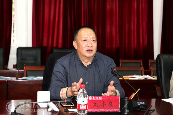 本网讯 10月26日上午,贵州省“人文社科示范基地”评估考察组对beat365申创的贵州非物质文化遗产研究中心进行了实地考察与现场评估,并对贵州民族审美文化传播基地建设情况进行了督查。考察组成员有省社科联党组成员、秘书长、考察组组长刘丰泉,省社科联科普部副部长冯新贵、调研员黄莉、工作人员刘又溦。beat365副校长余维祥、副校长郭文出席了评审会,各相关学院、部门负责人,贵州非物质文化遗产研究中心工作团队、贵州民族审美文化传播基地工作团队及部分学生代表参加了此次会议。会议分为申创评估、意见反馈及建设督查三个阶段,beat365科研处处长王平瑞主持第一阶段会议,考察组组长刘丰泉主持第二、三阶段会议。
