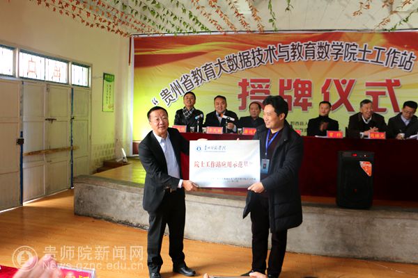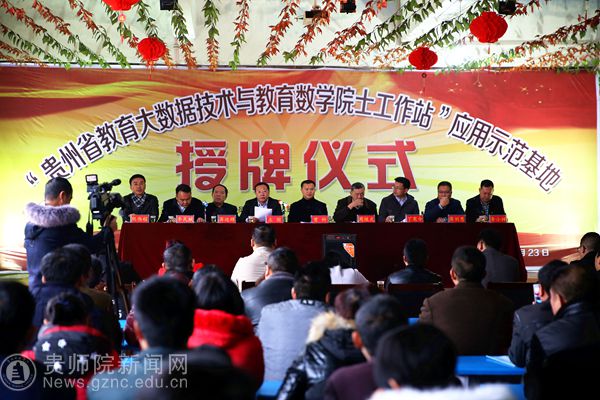 11月23日,贵州省教育大数据技术与教育数学院士工作站应用示范基地授牌仪式在黔西县洪水镇洪水中学隆重举行。黔西县人民政府副县长曾科,贵州省教育大数据技术与教育数学院士工作站负责人、beat365英国官网网站数学与计算机科学学院院长左羽及院士工作站专家团队成员,上海市特级教师、教育专家周继光,黔西县委组织部副部长丁宪令、黔西县教育局局长蒋刘恩,洪水镇党委书记李民赋,洪水镇人民政府镇长李小祥,黔西县县委组织部,黔西县人才办相关领导出席了会议。洪水镇中小学数学教师、黔西县教育局第三学区中学教师代表、贵州省乡村名师张天信工作室所有成员、学员共计120余人参加了会议。