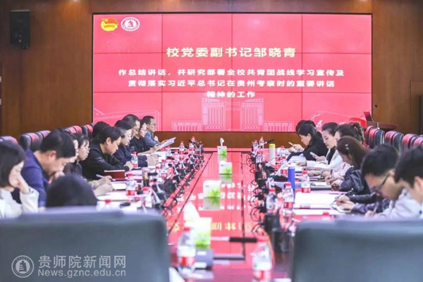 邹晓青在会议上指出,学校共青团工作是高校党的建设和思想政治工作的重要组成部分。今天,我们在这里召开共青团专题工作推进会议,就是为了让全校共青团工作战线充分认识做好学校共青团思想政治工作的极端重要性,准确把握做好高校共青团思想政治工作的方向和重点,积极发挥共青团在高校思想政治工作中的独特作用,结合近期的几项专项工作对全校共青团工作进行再动员、再部署,共同探讨如何持续引领广大师院青年师生在展现贵州新风采的新征程上如何更好地为中国式现代化贵州实践挺膺担当。结合如何做好新时期的党的青年工作,她提出了四点意见:一是以思想引领为根基,唤醒师院青年"挺膺担当"的使命自觉;二是以服务大局为导向,展现师院青年“强省有我” 的奋斗风采;三是以改革创新为动力,激发师院青年“敢闯敢试” 的青春活力。四是以从严治团为保障,塑造师院青年“廉洁润心”的先锋形象。她强调,全校各级团组织和广大团员团干部要深刻体悟习近平总书记视察贵州时的殷殷嘱托之重,进一步解放思想、更新观念,保持主动、明确方向,以清晰思路不断推动学校党的青年工作高质量发展。