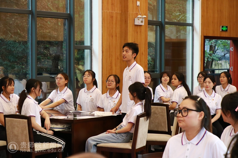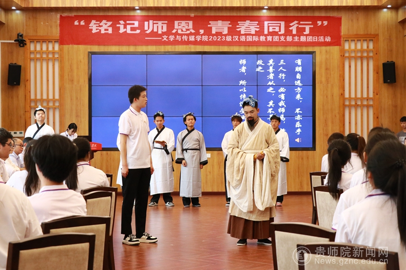2023级汉语国际教育班通过时空对话情景剧《师表昭彰·问孔记》,讲述了孔子“有教无类”“因材施教”等教育理念的时代传承,让尊师重道的传统美德深入人心。全班同学被分为六个小组,每组围绕“六个教育家精神”进行热烈讨论和现场发言。同学们结合自身实际,畅谈了对教育家精神的理解和感悟,表达了对未来教育事业的憧憬与期待。