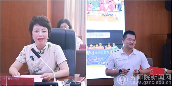 校工会主席刘红玲领学相关的精神,贵州省五一劳动奖章获得者、全省“劳模工匠进校园”宣讲团成员王奉涛作宣讲