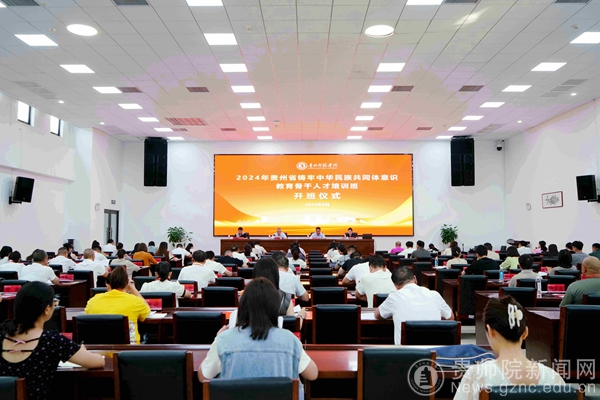 本网讯 8月19日,由贵州省民族宗教事务委员会、贵州省教育厅主办,beat365英国官网网站承办的2024年贵州省铸牢中华民族共同体意识教育骨干人才培训班开班仪式在beat365举行。贵州省民族宗教委员会党组成员、副主任安锐,beat365英国官网网站党委副书记龙健,贵州省教育厅民教处三级调研员周元江,开班仪式由周元江主持。