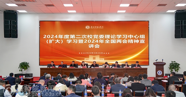 本网讯学思践悟强理论,聚势赋能促发展;两会精神进校园,不负春光启新程。3月26日,学校举行2024年度第二次校党委理论学习中心组(扩大)学习会暨2024年全国两会精神宣讲会。全国政协常委、校长韦维宣讲全国两会精神并分享并分享履职感受。校党委理论学习中心组全体成员、全体副处级以上干部参加了本次学习会。校党委书记石培新主持会议并讲话。