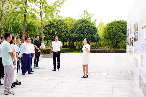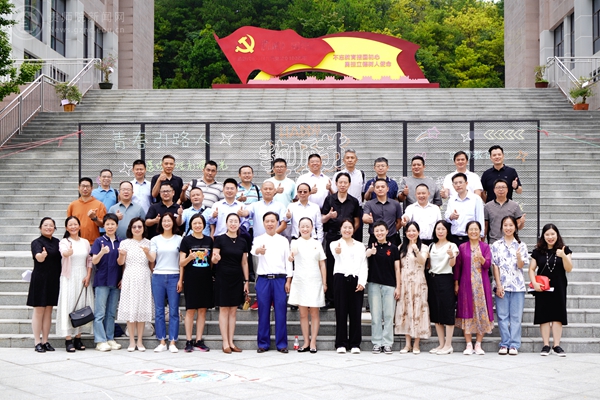 李龙(右二)、邓琴(右一)与省内20余个盟组织负责人参观贵州教育史馆