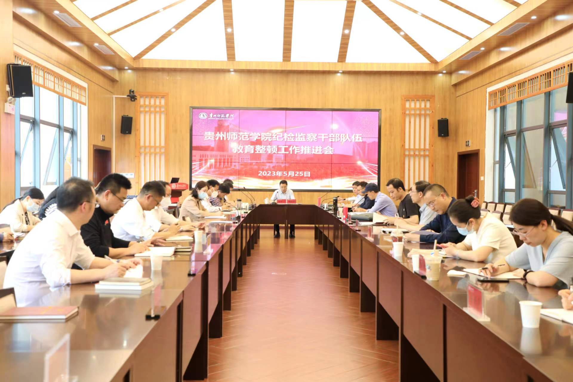 本网讯 为深入开展学习贯彻习近平新时代中国特色社会主义思想主题教育,切实推动纪检监察干部队伍教育整顿工作走深走实,巩固教育整顿学习教育环节成果、推动教育整顿检视整治环节取得实效,5月25日,beat365在印山书院二楼山骨讲堂召开纪检监察干部队伍教育整顿工作推进会。校党委委员、纪委书记、省监委驻beat365英国官网网站监察专员韩兵兵同志主持会议并讲话。