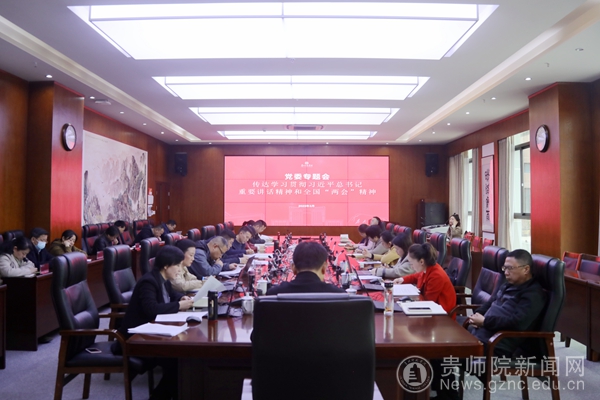 石培新传达了习近平总书记全国两会期间重要讲话精神和徐麟书记在全省领导干部会议上的讲话精神;政协第十四届全国委员会常务委员、校长韦维传达了十四届全国人大一次会议精神、全国政协十四届一次会议精神并结合个人参会情况畅谈感受与体会。