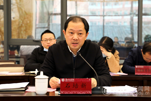 石培新强调,今年是进入全面建设社会主义现代化国家、向第二个百年奋斗目标进军新征程的重要一年,我们党将召开第二十次全国代表大会,在努力在开创贵州高质量发展新的“黄金十年”与建设特色教育强省的新征程中,全校上下要乘着新国发2号文件的东风,以虎虎生威的雄风、生龙活虎的干劲、气吞万里如虎的精神,主动抢抓机遇,全力用好机遇,切实将新国发2号文件带来的重大政策机遇落实到推动学校乃至全省高等教育事业发展的具体项目上,在实现第二个百年奋斗目标的伟大征程中,以埋头苦干、勇毅前行的坚定意志向党和人民交出一份满意的答卷,以优异成绩迎接党的二十大和省第十三次党代会的胜利召开。