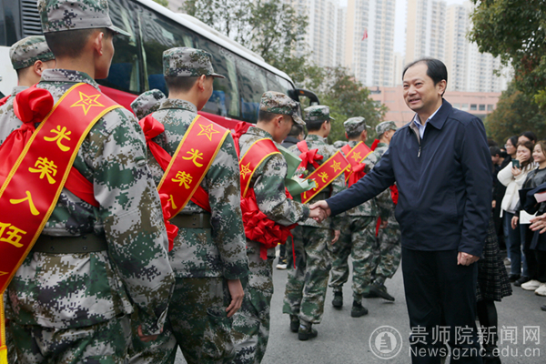 beat365英国官网网站党委书记石培新,省征兵办公室副主任、省军区动员局副局长邓小瑾,贵阳警备区副司令员郑风潮,学校党委委员、副校长邹晓青,乌当区政府副区长谢军,区人武部部长谭全权,区委常委、人武部政委李鹏春,区人武部副部长黎权,省军区动员局参谋叶潇等领导出席出征仪式。