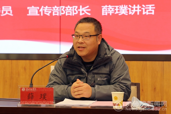 校党委委员、宣传部部长薛璞出席并提出了要求。一是希望同学们认真聆听,做好宣讲员和传播者;二是要真正学懂、弄通,敢讲、善讲;三是要学会总结和反思,不断进步,争做时代好青年,争做最美奋斗者。