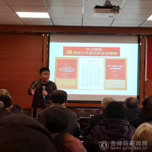 本网讯 12月23日上午,离退休党委邀请贵州民族教育研究院蔡知远博士为beat365离退休老同志作党的十九届五中全会精神专题辅导报告,报告会由离退休党委书记芦军主持。
