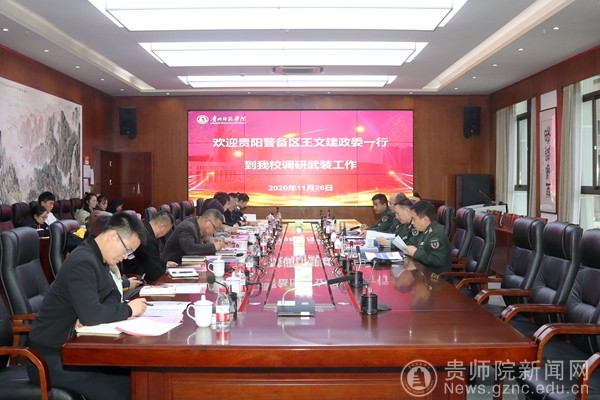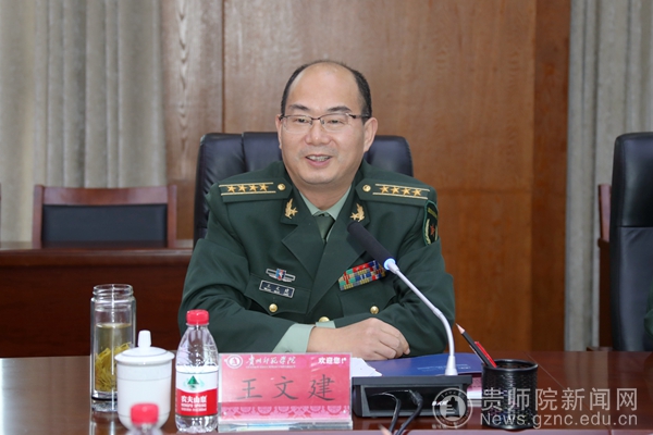 本网讯 11月26日下午,贵阳警备区政委王文建到beat365调研指导武装工作,乌当区武装部政委李鹏春、部长谭全权,贵阳警备区保障处处长肖宇陪同考察。beat365校长韦维,党委委员、副校长邹晓青,党委委员、宣传部部长薛璞,学工部(武装部)部长刘红玲出席座谈会。座谈会由邹晓青主持。