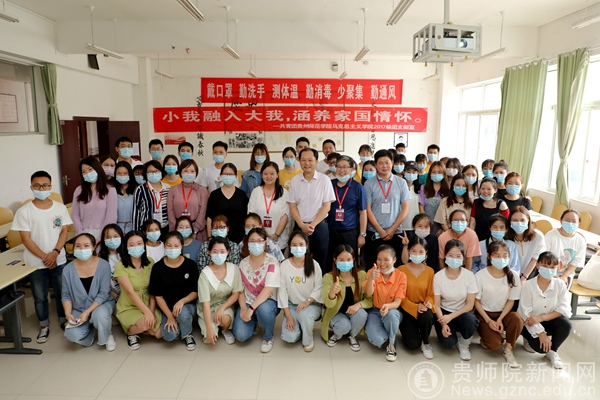 本网讯 6月19日下午,逸夫楼204教室里传来了阵阵掌声,来自马克思主义学院2017级思想政治教育班的60余名同学通过主题为“小我融入大我,涵养家国情怀”的主题团日活动与校党委书记石培新一起共话家国情怀与青年责任担当。青春的气息洋溢全场,石培新走上讲台与大家分享了自己作为思政教育工作者的初心故事,更用“做最强最美的思政人”的深情寄语为这群未来的思政教师筑牢了信仰之魂。
