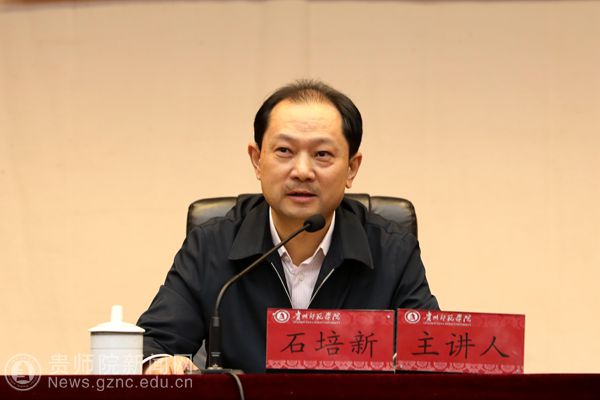 首先,石培新向学员们宣讲了党的十九届四中全会精神和贵州省十二次四中全会精神。他用大量的数据和生动的事例,向学员们展现了我国经济快速发展和社会长期稳定的“两大奇迹”,阐述了中国特色社会主义制度的优越性,并且强调社会发展到今天,推进国家治理体系和治理能力现代化的重要性。也讲到了贵州70年来经济社会发生的变化,是中国特色社会主义制度极大优越性和丰富实践成果的最好印证,鼓励同学们进一步增强社会主义道路自信。