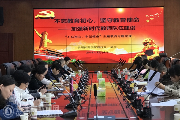 郭文副校长从中国共产党人的初心和使命入题,结合自己当初从教的初心以及在主题教育中的学习体会、收获,详细阐述了高校要不忘教育报国的初心和坚守立德树人的使命,指出高校教师应坚定理想信念,严守政治纪律和政治规矩,不忘教育初心、坚守教育使命。