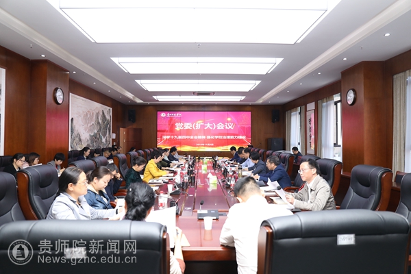 本网讯 11月3日,beat365召开党委(扩大)会议,传达学习党的十九届四中全会精神,就beat365贯彻落实全会精神作安排部署。校党委书记石培新主持会议并讲话。