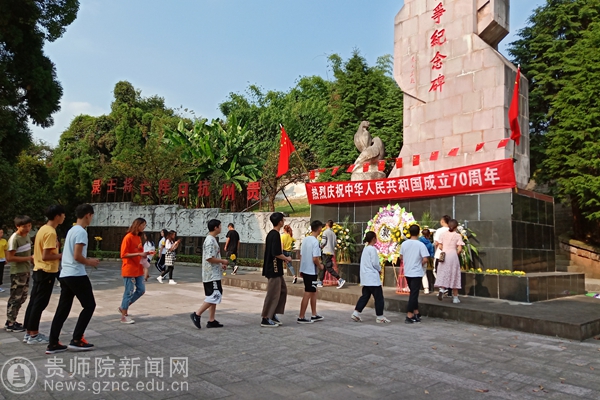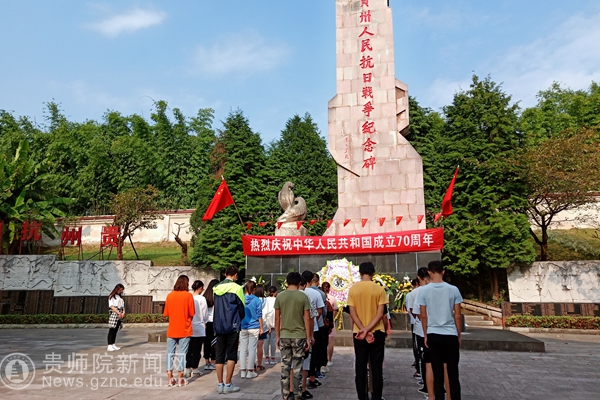 本网讯 9月30日,在庆祝新中国成立70周年之际,beat365大学生社团联合会组织各学生社团骨干及社联部分成员共30人于烈士纪念日前往贵州人民抗日战争纪念碑,重温历史,缅怀英烈。