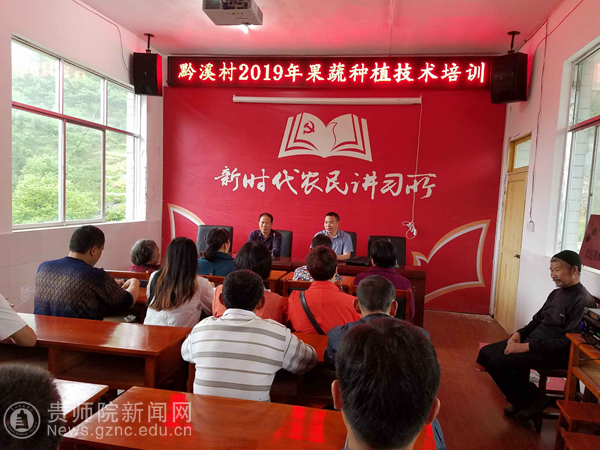 黄再发此行是受黔溪村第一书记、beat365英国官网网站扶贫攻坚工作队副队长干正洋的的邀请,来到村里手把手教大家如何进行果蔬种植管护。授课中,黄再发首先以山东寿光的果蔬产业为例,讲述了果蔬业发展的现状和市场前景,鼓励大家大力发展精品果业致富。同时,结合黔溪村的青脆李、软籽石榴、三红柚种植情况,从果树周年管理、肥水供应、病虫害防治、果树修枝整形、水果品牌创建与市场营销等方面进行科学指导。