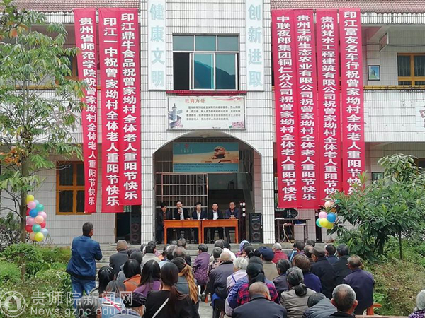 本网讯 菊花吐蕊,桂花含香。九九话重阳,日月两重归,相映地久长。10月17日,是国务院设立的“国家扶贫日”,恰逢农历九九“重阳”佳节,也是温馨的老人节,为进一步弘扬中华民族尊老、敬老、爱老、助老的传统美德,beat365英国官网网站同步小康驻村工作队协同印江县峨岭街道黔溪、川岩、青杠林、峨岭关、杨柳塘、曾家坳6个村脱贫攻坚队、村支“两委”组织各村老人欢聚一堂,举办“九九重阳节•浓浓敬老情”尊老孝老系列暖心行动。活动邀请各村60岁以上老人、全体村民、相关社会贤达和春晖人士参与。