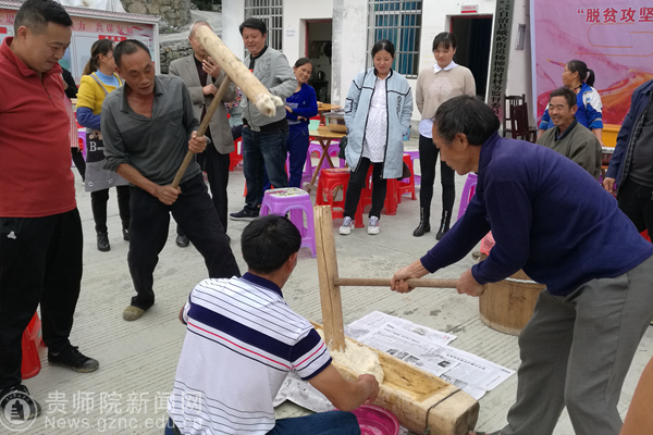 杨柳塘村村民与老人打糍粑庆重阳