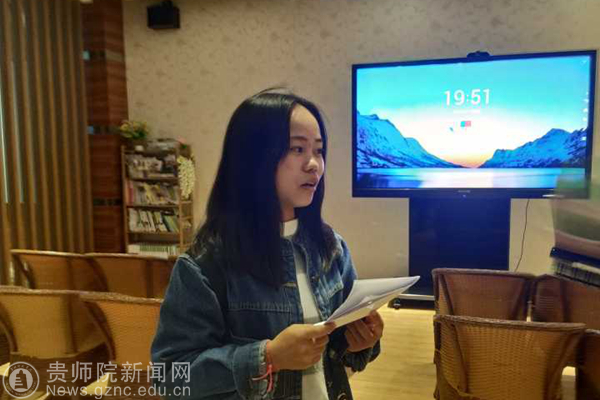 一个优秀的群体背后总少不了负责的人,他们默默为之奉献,甘之如饴。看着大屏幕上“一枝一叶总关情”的节目主题,来自18级数学与应用数学班的袁园做出了如此感慨,她说:“作为当代的一名大学生,这其中的精神是非常有作用的。对于我来说,我担任了我们班的班长,意味着自己的肩上承担着一定的责任,我希望我自己也能做那个在背后不求回报,默默付出的人,希望能把我自己的一份力量贡献到集体中去,把为人民服务践行成为同学服务。”采得百花成蜜后,为谁辛苦为谁甜。袁园说到:“我对节目中印象最深刻的是在节目快结束的时候,全体在场同学跟着中央广播电视总台的方亮,一起朗诵习近平总书记的《念奴娇——追思焦裕禄》,其中‘生也沙丘,死也沙丘’更是让我不能忘怀。”