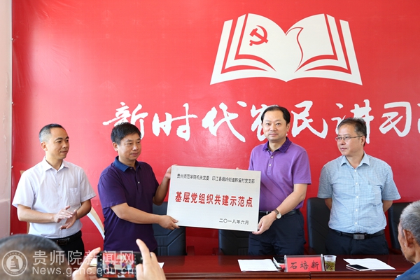 6月28日,在黔溪村,“beat365英国官网网站机关党委 印江县峨岭街道黔溪村党支部基层党组织建设示范点”正式挂牌成立。beat365英国官网网站机关党委书记方尚礼为黔溪村新时代农民讲习所捐赠了党建图书和资料;beat365英国官网网站化生学院党委书记韩宝银在会上讲了一堂生动的微党课示范课。