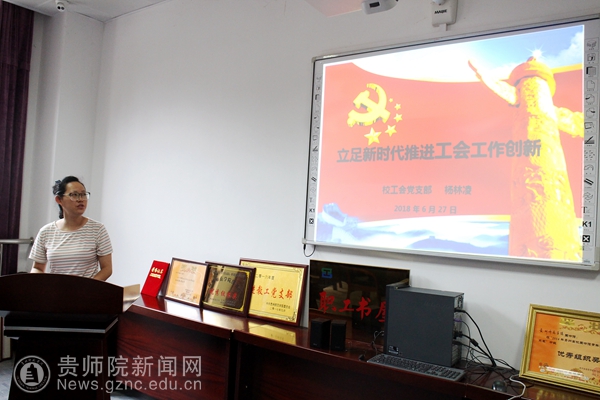 会议最后进行了建设学习型基层党组织上“微党课”。这期“微党课”分别是,后勤处党支部书记杜映雪讲授《浅谈十九大报告中的“新”和“亮”》,重点实验室党支部书记肖铁军讲授《健康中国战略》,宣传部党支部书记周煜讲授《浅谈对习近平总书记关于新时代教师队伍建设改革的重要论述的学习体会》,教务处党支部书记聂冬梅讲授《一起聊聊马克思》,校工会党支部委员杨凌林讲授《立足新时代推进工会工作创新》。