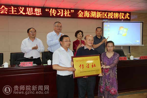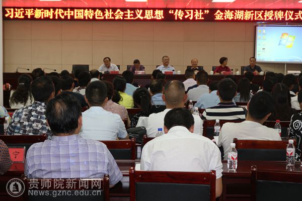 本网讯 6月9日,在毕节试验区喜迎三十周年之际,习近平新时代中国特色社会主义思想“传习社”金海湖新区授牌仪式暨2018年“全国陶研系统提升毕节教育软实力共建行动”(以下简称“共建行动”)推进会在毕节市金海湖新区召开。贵州省人大常委会副主任、民盟中央常委、贵州省委主委何力,贵州省文史馆馆长、中国陶行知研究会(以下简称“中陶会”)副会长、贵州省陶行知教育思想研究会(以下简称“贵陶会”)会长顾久,贵州省社会科学联合会(以下简称“贵州省社科联”)党组成员、副主席刘宗严,毕节市人民政府副市长、民盟贵州省委副主委冉霞,毕节市教育局局长王发礼,金海湖新区党工委副书记彭玉祥出席活动,毕节市陶行知教育思想研究会会长赵昌伦主持会议。