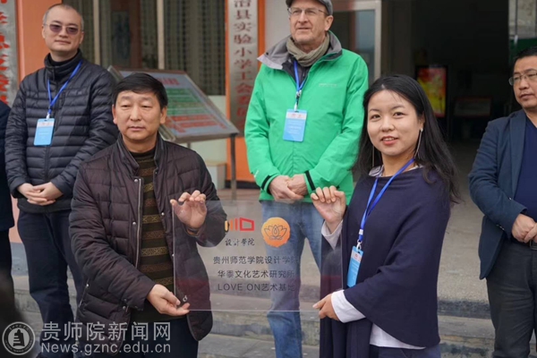 本网讯 经同步小康驻村工作队精心策划,设计学院副院长聂森牵线搭桥,中南民族大学少数民族审美文化研究中心、华黍文化艺术研究所所长刘凡教授、德国著名艺术家、教育家、柏林工程艺术大学Walter Bergmoser教授等5名专家2月28日赴印江土家族苗族自治县实验小学开展留守儿童艺术治疗活动。3月2日正值中国的传统节日——元宵节,在这样一个特别的日子,beat365英国官网网站设计学院、华黍文化艺术研究所Love on艺术基地在印江县实验小学挂牌,意味着beat365英国官网网站关注印江县留守儿童艺术治疗正式拉开帷幕,下一步将和印江县实验小学“结对”着眼于农村留守儿童的心灵呵护,不定期赴该校开展艺术治疗活动,为孩子的心灵营造避风港。学校还将联合华黍文化艺术研究所寻找资金资助印江县留守儿童到武汉参与更多艺术治疗和艺术体验项目,尽微薄之力帮助需要帮助的人,将大爱洒向少数民族贫困地区,关心、关注、关爱留守儿童的心理健康,净化他们的心灵,培养留守儿童的健全人格,让他们都成为祖国最美丽而又最灿烂的花朵。