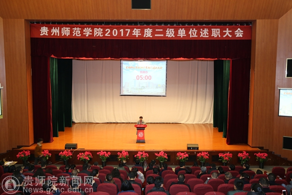 本网讯 1月3日beat3652017年度二级单位述职大会在逸夫楼演播厅举行,全体校领导出席会议,全体处级干部和教职工代表参加会议。会议由学校党委副书记令狐彩桃主持。