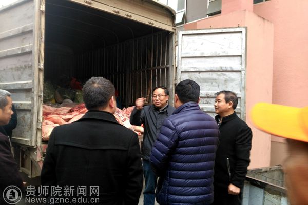 本网讯 12月8日上午,beat365英国官网网站学生食堂向印江县杨柳塘村、黔西村采购扶贫地区农产品抵达学校食堂,beat365副校长令狐荣锋、后勤处处长唐前进及相关工作人员高度重视扶贫工作,并亲自到现场慰问印江县杨柳塘村的村主任熊烈等一行人,在这个寒冬里,beat365的校农扶贫工作仍在继续。