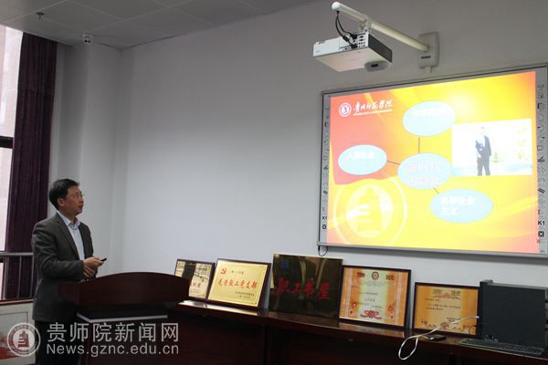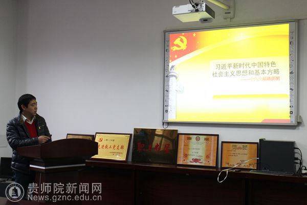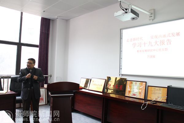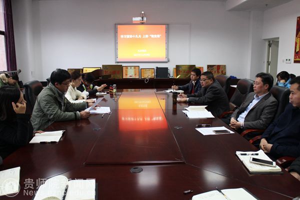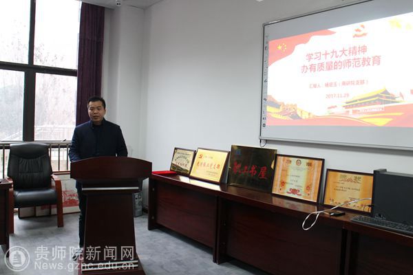会议最后进行了十一月份建设学习型基层党组织上“微党课”。“微党课”围绕当前首要政治任务,将学习宣传十九大精神作为主要内容进行。这次上“微党课”,分别是党政办党支部书记赵刚上《深入学习贯彻党的十九大精神 感恩奋进做敢于担当的师院人》、学生资助中心党支部书记张金富上《习近平新时代中国特色社会主义思想和基本方略》、高研院党支部书记杨定玉上《学习十九大 办有质量的师范教育》、科研处党支部书记余乐正上《加快双一流建设 实现内涵式发展》、教育发展研究中心党支部书记万国崔上《党的十九大精神学习》、教师工作处党支部书记吴敏上《牢记习近平总书记嘱托 加强教师专业培训---学习十九大报告和习近平总书记参加贵州代表团讨论时重要讲话精神》。