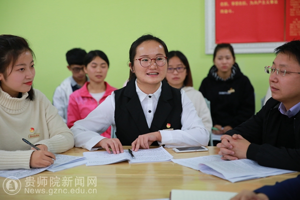 涂妍来到教室时,同学们正围坐在一起,收看习近平总书记参加党的十九大贵州省代表团讨论的视频。涂妍问同学们,大家记得十九大报告里对青年的要求吗?“青年兴则国家兴,青年强则国家强。青年一代有理想、有本领、有担当,国家就有前途,民族就有希望。”同学们齐声说出了报告中的这一段话。