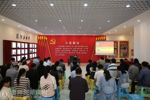 校纪委书记王之瑞、校纪委委员、各基层党委纪检委员、各党支部纪检委员及纪检监察办公室全体人员参加活动。活动由校纪委副书记、纪检监察办公室主任谢红梅主持。活动共有六项内容:一是由校纪检监察办公室副主任于治鳞领誓,全体人员重温入党誓词;二是王之瑞传达贵州省十二次党代会纪委工作报告精神;三是王之瑞书记上党课;四是各基层党委纪检委员汇报工作;五是参观党员教育基地;六是工作研讨。
