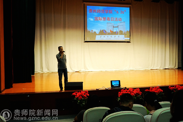 本网讯 “6.26”国际禁毒日之际,根据《省教育厅办公室关于印发<2017年全省教育系统禁毒宣传月活动方案>的通知》(黔教办函〔2017〕77号)精神,beat365保卫处联合学工部组织学生在逸夫楼演播厅观看禁毒警示教育宣传片《与死神共舞》,保卫处处长蒋江南出席活动,各学院学生代表参加活动。