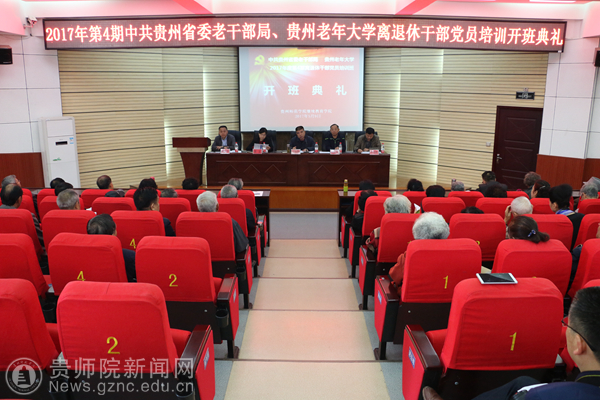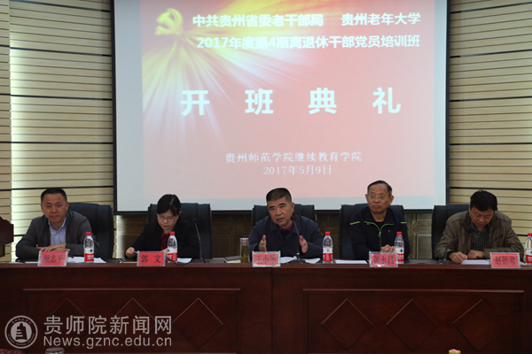本网讯 5月9日至11日,“中共贵州省委老干部局、贵州老年大学2017年第4期离退休干部党员培训”在继续教育学院举办。开班典礼上,贵州省委老干部局副局长、贵州老年大学党委书记、校长王小乐;贵州省林业厅党组成员、机关党委书记黄永昌;beat365英国官网网站副校长郭文;贵州老年大学老干部党建处处长颜志平等出席了开班典礼。开班典礼由继续教育学院院长赵德肃主持。