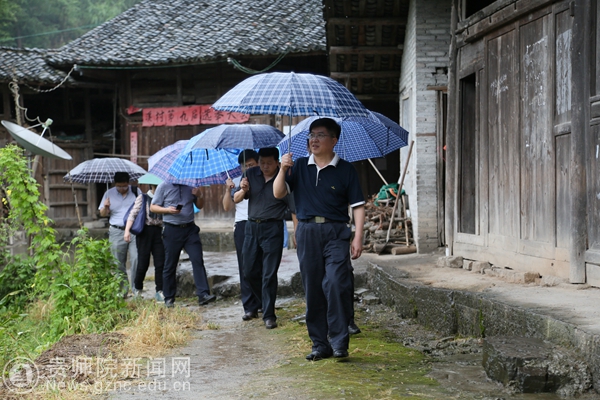 在龙溪村冒雨开展实地调研