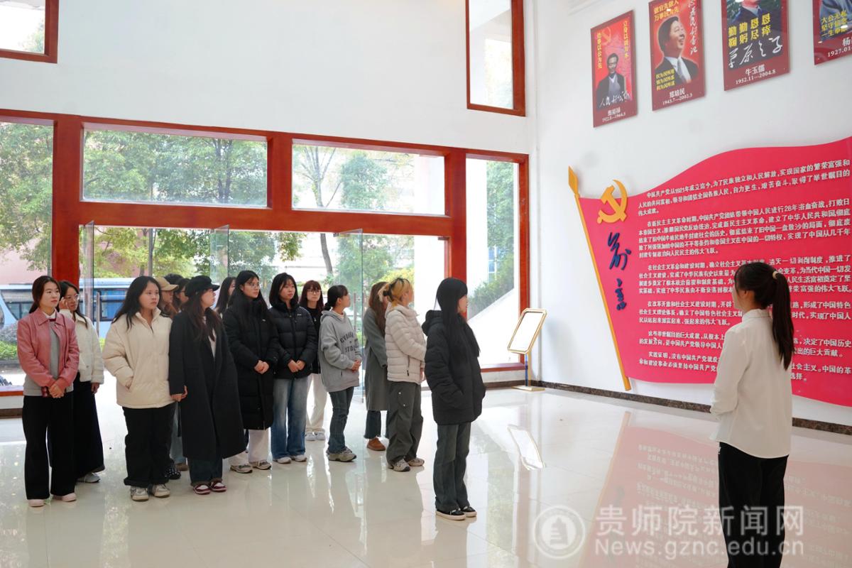 期间,校党委书记战勇以《在新的赶考之路上淬炼党性 以青春之我建设现代化新贵州》为题,机关党委书记张瑶以《简述新中国外交的光辉历程》为题,马克思主义学院王天桥教授以《大历史观:在党史学习中彰显青年学生的时代担当》为题分别为发展对象授课。11月8日,分批组织学员参观了学校党员教育基地(贵州省教育系统“理想信念教育基地”),同时通过分组研讨、心得交流等形式深化学习成效,综合运用线上线下,专题授课、集中研讨、现场参观等多种方式,为全体学员打造了一场兼具思想深度、历史厚度与实践温度的党性教育盛宴。