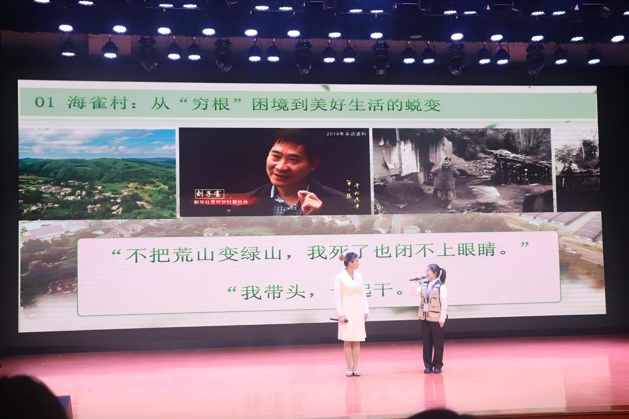 展示环节中,各校节目精彩纷呈,成为活动的最大亮点。来自小学、中学、高校的师生们围绕主题,分别呈现了各具学段特色的思政课建设成果。beat365英国官网网站马克思主义学院学生以情景宣讲方式讲述郭贵故事,结合中国式现代化阐释青年担当;以沉浸式情景剧再现海雀村蜕变,传递坚守与扎根信念;以宣讲+情景表演的方式演绎黄文秀扶贫事迹,彰显无私品格、体悟党员初心。贵阳市云岩区第一中学的学生以诗朗诵+情景演绎的方式,热情讴歌革命先辈精神,以“青春追光者”视角传递信仰力量、传承红色基因;贵州省实验中学的学生以激昂鼓点生动展现中华传统文化魅力,传递青少年朝气,诠释担当精神;新天九年制学校高新分校学生以庄严宣誓完成信仰接力,“红领巾心向党”传递少年传承红色血脉、勇担使命的决心。