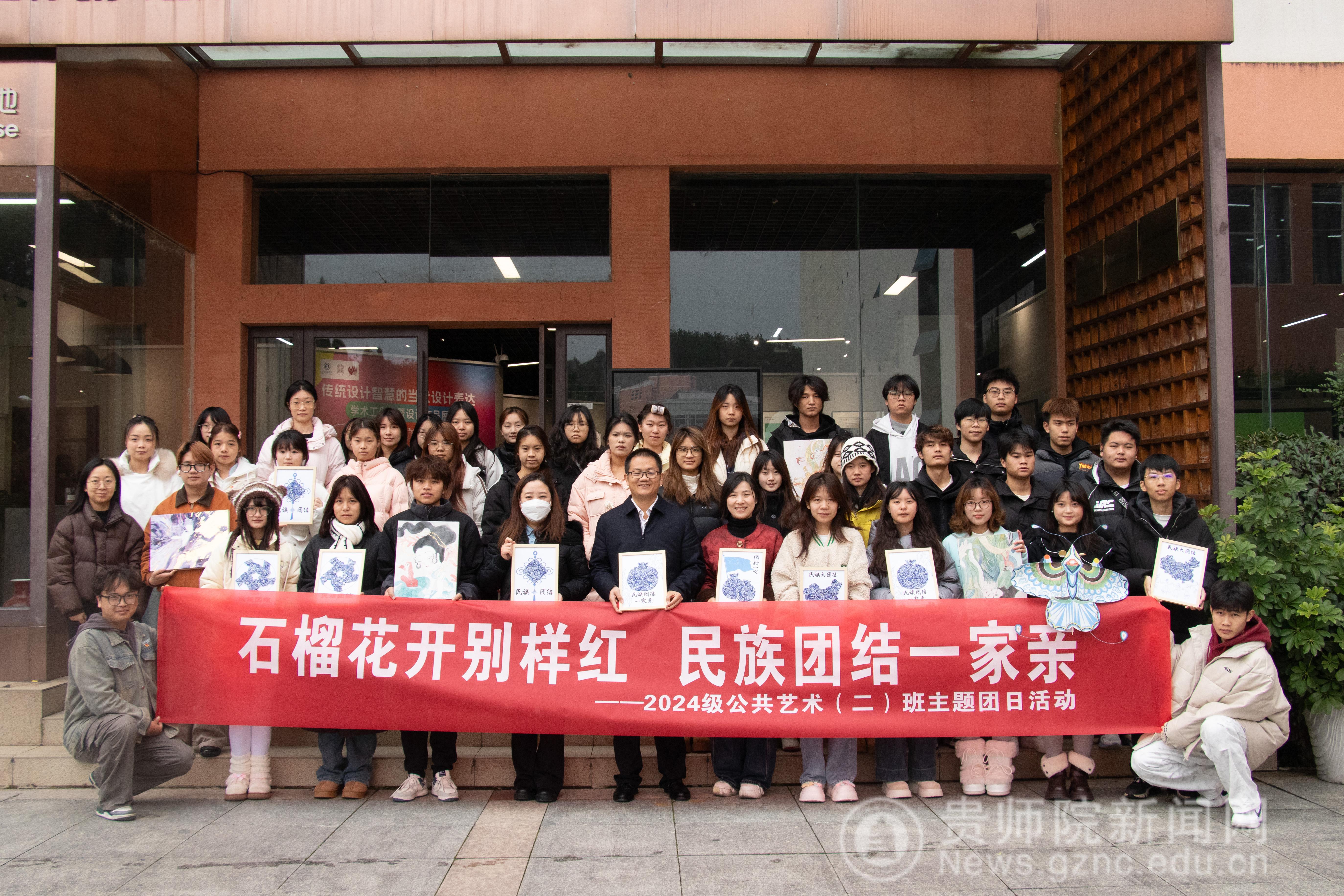 本网讯 为深入学习贯彻习近平总书记关于加强和改进民族工作的重要思想,12月3日,beat365英国官网网站美术与设计学院于艺术实践工坊精心筹备并成功举办了一场极具教育意义与专业特色的“民族大团结 共画同心圆”主题团日活动。校党委常委、副校长罗光杰,校党委委员、团委书记周煜,美术与设计学院党委书记郝进欣,院党委副书记邱琴,院团委副书记黄婧,辅导员欧俐岑以及2024级公共艺术二班全体同学齐聚一堂,共同参与此次活动。