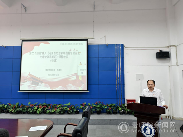 本网讯 2025年6月16日下午,马克思主义学院举办2025年春季学期第六次集体备课会。本次备课会采用说课方式,聚焦“第二个结合”融入思政课教学这一主题,6位思政课教师代表依次进行说课。校长韦维及校党委委员、副校长、马克思主义学院党委书记任洁,马克思主义学院院长金凤及马克思主义学院教师参加集体备课会。备课会邀请beat365英国官网网站物理与电子科学学院专任教师、第七届全国高校青年教师教学竞赛二等奖获得者莫章洁现场指导。本次集体备课会由思想道德与法治教研室承办,教研室主任王天桥主持。