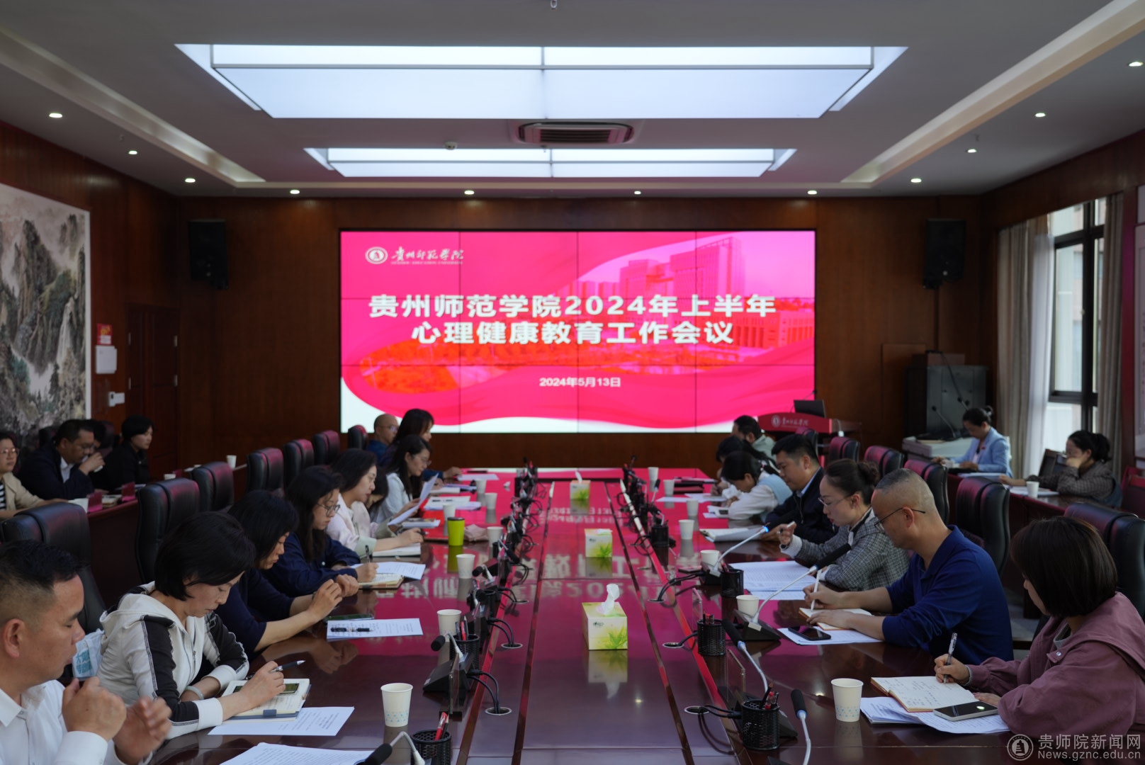 心理健康教育与咨询中心副主任谢其利首先领学了《贵州省全面加强和改进新时代心理健康教育工作实施方案(2024——2026年)》,对方案中的总体要求、主要任务和保障措施结合工作实际进行了解读;随后谢其利通报了本学期开学至今beat365心理健康教育工作总体情况,并对“5.25心理健康活动月”及近期心理健康教育相关工作进行了具体安排。