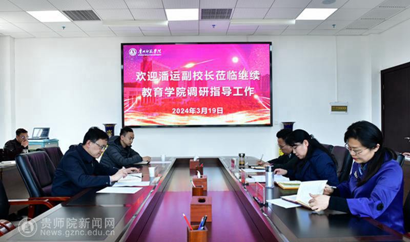 本网讯 3月19日下午,校党委委员、副校长潘运到继续教育学院调研指导工作,校党政办公室法务信访室主任袁程琨陪同调研。继续教育学院直属支部书记兼副院长韦丹、副院长蔡晶和副院长何荣及学院全体教职工参加了会议。