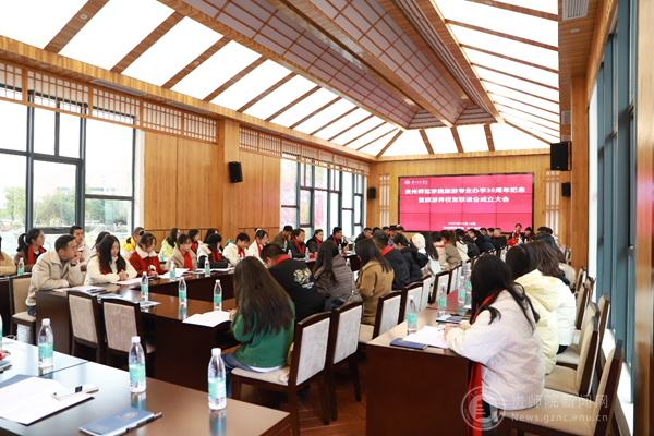 会议第三环节以“继往开来”为主题,与会校友、参会的21级旅游职业能力特训队队员,以及参会教师轮流发言。作为与会校友曾经的任课老师(或兼职辅导员),李乐京、吴亚平、陈志永、周杰都先后发言,既对与会校友们取得的成就表示赞同,也对与会校友的发展前景寄予厚望。大家围绕“以信息互通促资源共享,与贵州旅游业共同成长”这一会议主题,与会校友们展开了相对充分的交流,为后期开展深入交流和相关合作奠定了坚实的信息基础。在会议进行期间,就有部分校友达成了口头合作意向。