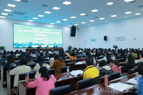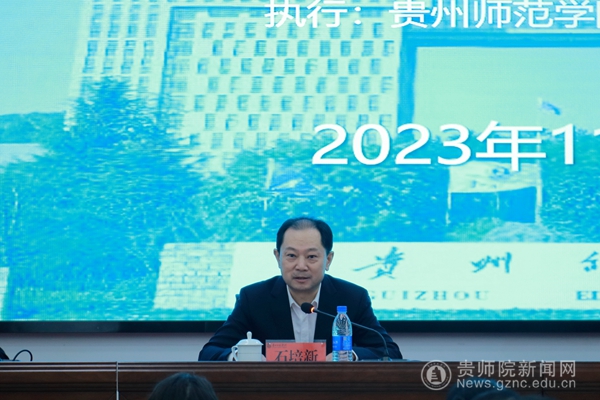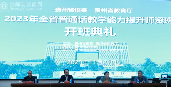 本网讯 11月21日,由贵州省语委、贵州省教育厅主办,beat365英国官网网站承办的“2023年全省普通话教学能力提升师资班”在beat365英国官网网站综合实训楼301会议室举行隆重的开班典礼。典礼由省教育厅语委办副主任罗洪贵主持,教育部语言文字应用研究所原所长张世平、省教育工会主席王慧、beat365英国官网网站党委书记石培新等出席典礼并讲话。